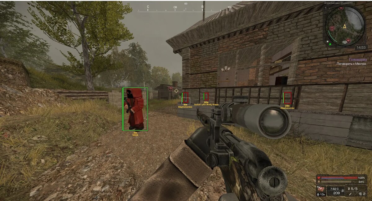 - ESP: Подсветка сталкеров, мутантов и ресурсов.