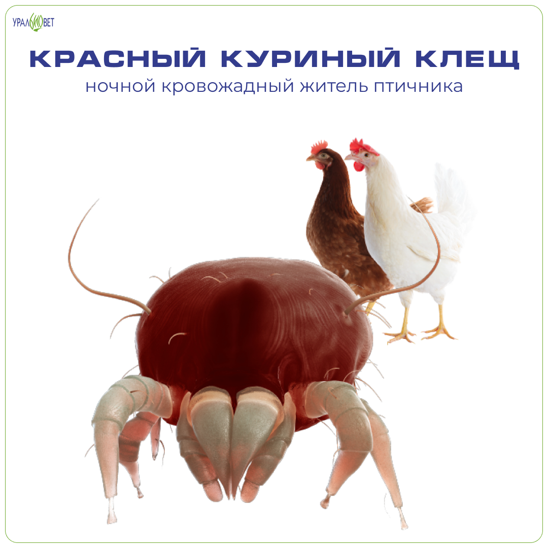 @uralbiovet Красный куриный клещ (Dermanyssus gallinae) - гематофаг эктопаразит домашней птицы. Несмотря на свои распространённые названия, он поражает широкий спектр хозяев, включая несколько видов диких птиц и млекопитающих, в том числе людей. Красный куриный клещ нападает на птицу только для питания, преимущественно ночью, а остальное время проводит на оборудовании, в гнёздах, в помещениях, где содержится птица. За время своей жизнедеятельности проходит несколько стадий от яйца до имаго (яйцо-личинка-протонимфа-дейтонимфа-имаго). Последние 3 стадии питаются кровью. Цикл развития клеща может варьироваться в зависимости от условий окружающей среды и составляет от 5 до 14 дней. Первая стадия клеща, называемая протонимфой, формируется из яйца за 3-5 дней и начинает питаться кровью. Оптимальными условиями для развития являются температура от 18 до 25 °С и относительная влажность в пределах 60-80%, что соответствует параметрам микроклимата в птичниках. На промышленных птицефабриках цикл