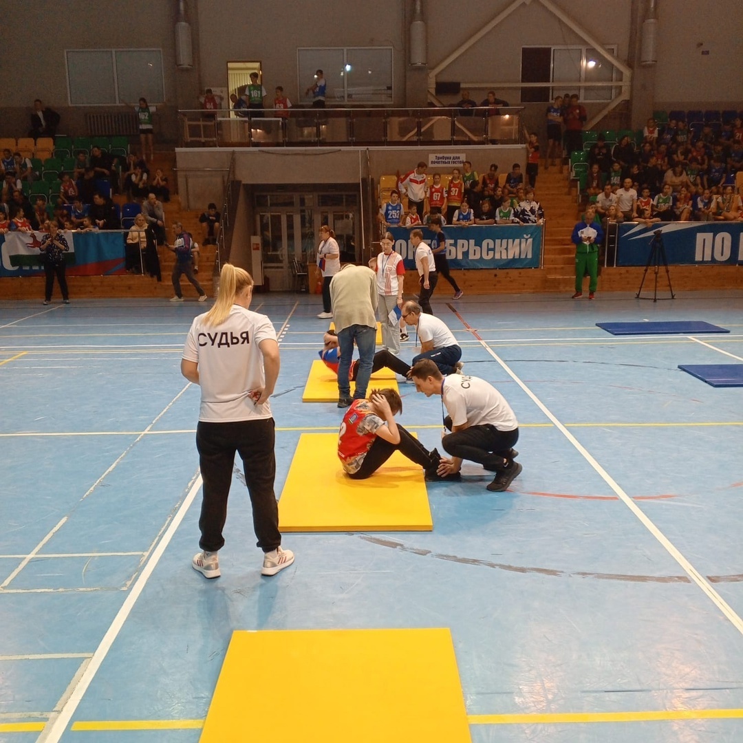 Наша команда, которая состоит из шести человек (трое юношей и трое девушек) в первый день соревнований прошли эстафету ГТО. Они преодолели испытания: челночный бег, прыжки в длину с места, поднимание туловища, сгибание и разгибание рук в упоре лёжа, метание мяча 1 кг в обруч с расстояния 3 метра. Впереди у ребят еще ряд испытаний. Соревнования продолжаются.