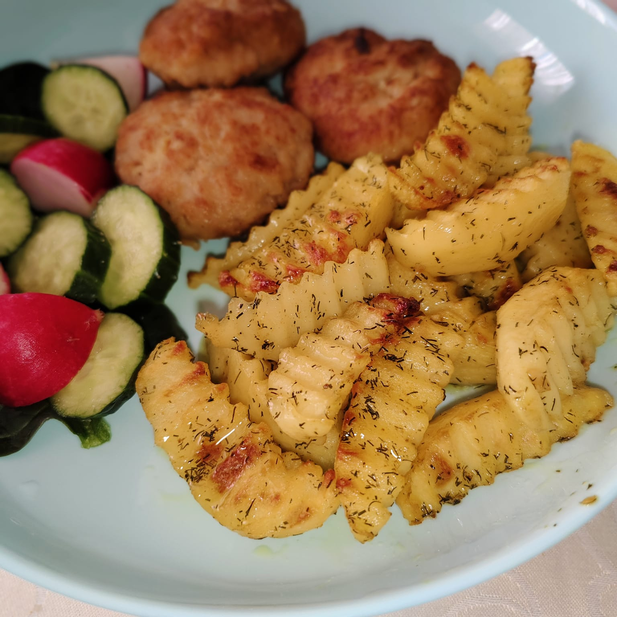 Я вернулась из Эмиратов со сложным отношением к простым углеводам ) Да и к сложным тоже. Крупы пока не хочется... А вот запечённой картошечки очень захотелось! Мои духовки хронически не готовят картошку. Мясо готово, а картошка нет! И это не только мой текущий мини-духовой шкаф, а все мои духовки на протяжении долгого времени. Поэтому у меня прижился этот рецепт , в котором нужно картошку сначала отварить , буквально несколько минут, а потом запечь. Вот таким способом она чудо, как хороша. Вернее, по рецепту звучит - только довести до кипения, но я кипячу 1-2 минуты. Итак, картофель очистить и порезать на произвольные дольки, примерно такого размера, средний картофель на 2-4 части Опустить в кипящую воду, довести до кипения и на этом всё или, как я, кипятить 1-2 минуты. Есть вариант , в котором картофель опускают в холодную воду и потом доводят до кипения. Но я сначала ставлю воду на плиту и чищу картофель, а вода в это время закипает ) Воду слить. Приготовить
