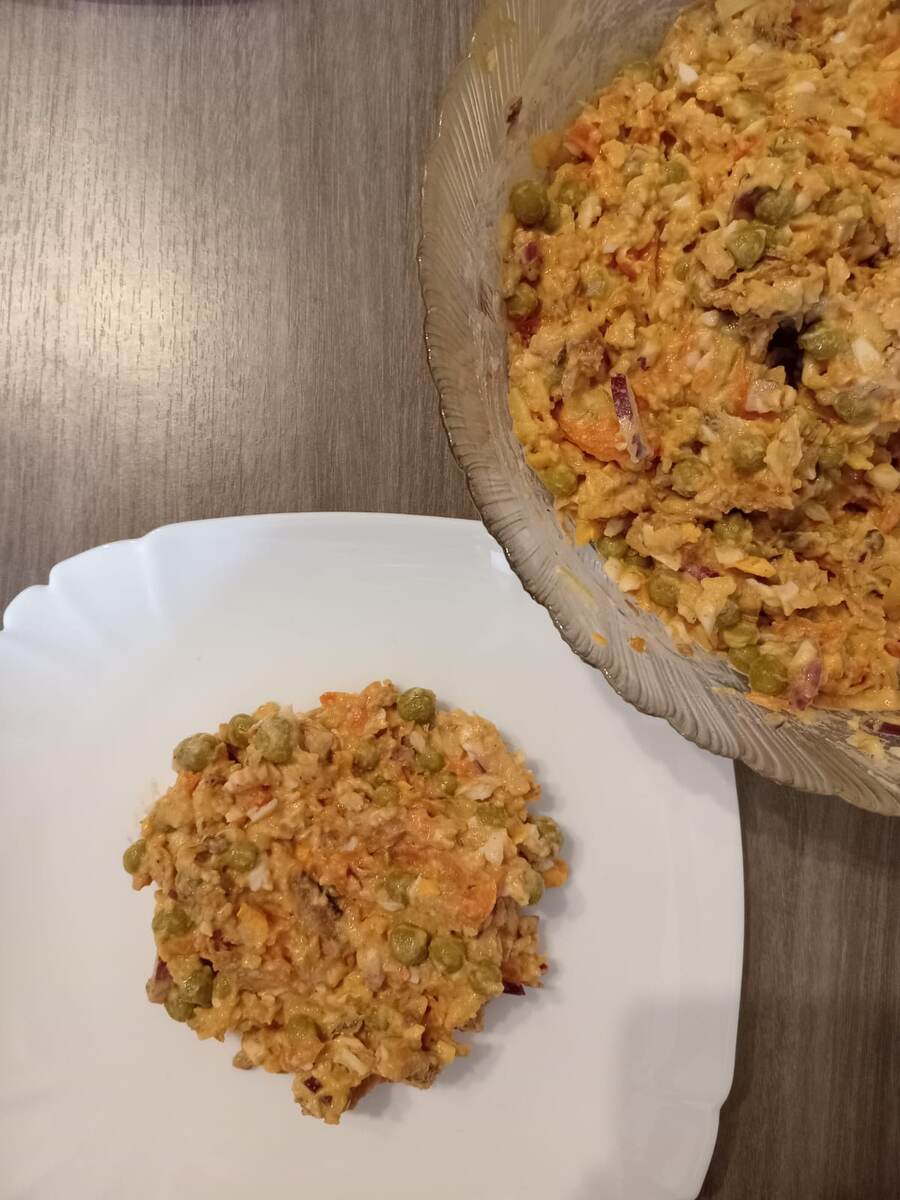 Ищете вкусный и экономный салат? Отличный и давно проверенный вариант - холодные блюда с консервами, например, с килькой в томатном соусе. Отличное дополнение к обеду или ужину. Для приготовления потребуются следующие ингредиенты (на 4-6 персон): Пошаговый рецепт салата с килькой в томате 1) Заранее очистите отварные овощи от кожуры, яйца от скорлупы. 2) Выложите в салатник кильку в томатном соусе. Крупные куски уменьшите при помощи вилки. 3) Пропускаем через среднюю терку очищенную отварную морковь. 4) Нарезаем мелко-средне очищенную головку лука. 5) Пропускаем через среднюю терку отварной очищенный картофель. 6) Добавляем зеленый горошек. 7) Натираем отварные яйца. 8) По желанию и вкусу солим, перчим, добавляем майонез. Хорошенько перемешиваем. Отправляем в холодильник на 1-1,5 часа. 9) недорогой салат из рыбы готов. Подаем в салатнике и порционно.