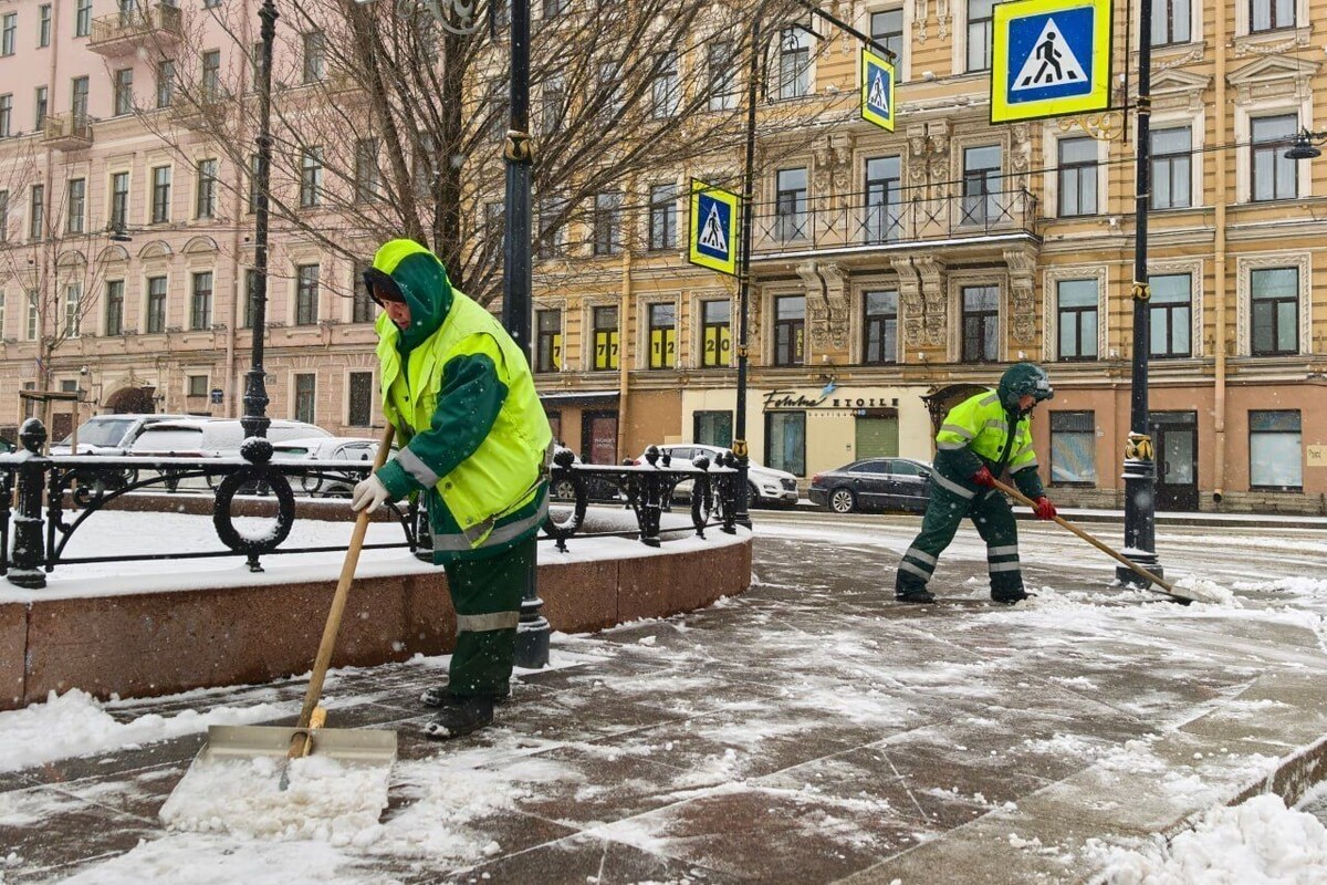 Улицы Петербурга сегодня убирают 638 машин и 1035 дворников