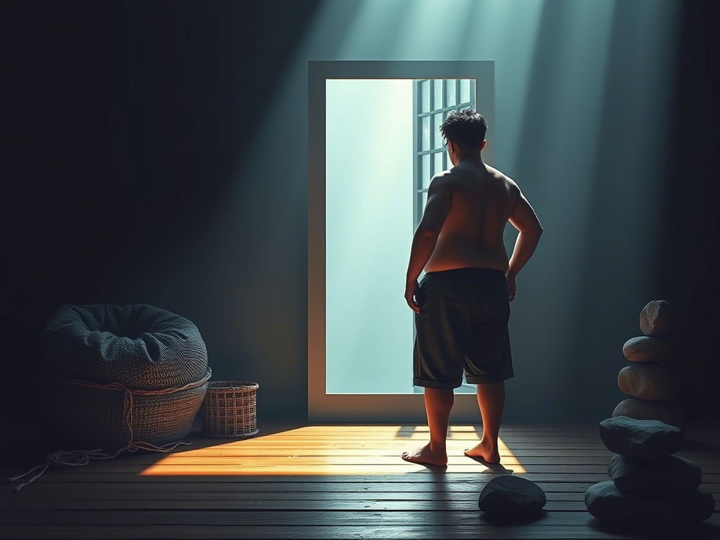 Мой брат Рен ворчал, глядя на меня: "Зачем это? Лежать и дёргаться, как дурак?" Лёг на пол — старый, в пятнах от времени, где доски скрипели под его весом, а пыль поднималась в луче света. Покачался — нехотя, тяжело, как бык на пашне, что фыркает и пыхтит. Через неделю — минус два кило. Живот втянулся — как парус без ветра, что хлопает в тишине. "Это что, магия какая?" — буркнул он, потирая спину — широкую, в складках, что пахли потом и табаком. "Нет, жизнь," — ответил я, глядя в его глаза — узкие, злые. Делай каждое утро. Ляг. Качайся. Проверь: спина течёт — или стоит, как камень в болоте?