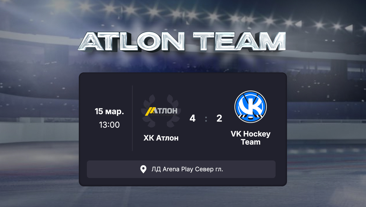 15 марта 2025 года войдет в историю ХК Атлон! В этот день наша команда совершила фантастический триумф, завоевав золото регулярного чемпионата «Трудовые резервы». В напряженном, жестком, но невероятно зрелищном финальном матче против VK Hockey Team мы доказали, что именно Атлон – сильнейшая команда сезона! Счет – 4:2! Но за этими цифрами скрывается потрясающая игра, несгибаемая воля к победе и настоящая командная работа. С первых секунд стало ясно – игра будет нелегкая. VK Hockey Team – серьезный соперник, который знал, за что идет борьба. Они вышли на лед агрессивно, плотно держали наших нападающих, прессинговали, ловили на ошибках. Но Атлон был готов к этой битве. Мы включили скорость, задавили соперника своим темпом, заставили их обороняться и уже в первом периоде отправили шайбу в ворота! После этого матч превратился в настоящее хоккейное противостояние: ✦ Жесткая силовая борьба – соперник пытался задавить нас, но мы отвечали той же монетой.