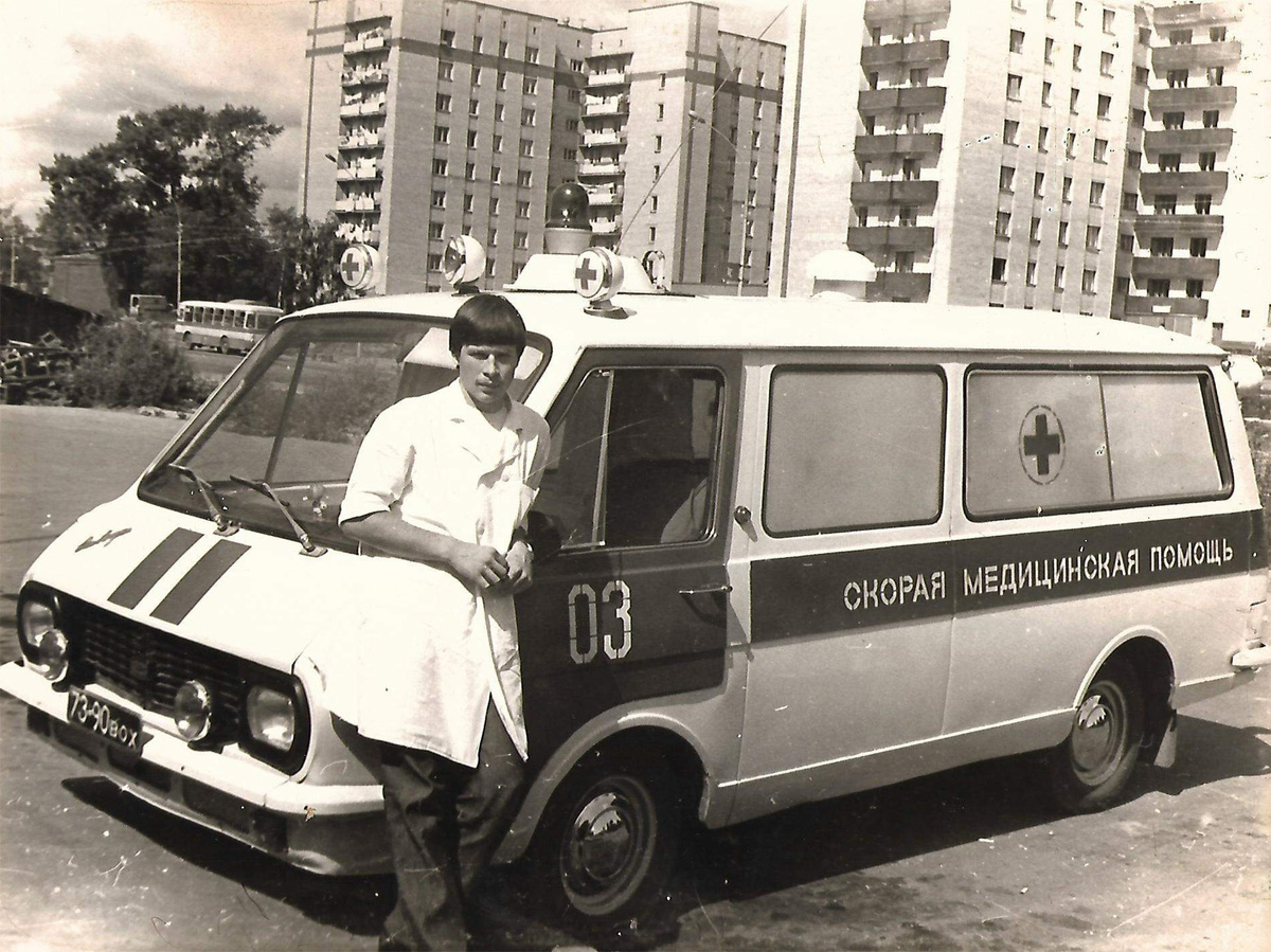 Снимок сделан у станции скорой медицинской помощи у перекрёстка улиц Чехова и Челюскинцев в 1980-е. Первая станция скорой помощи появилась в 1921 году при санитарно-эпидемиологическом бюро. Она разместилась в нескольких комнатах одного из домов на Кузнецкой улице (современная Авксентьевского). В 1932 году станция перебралась в начало современной улицы Мира, а в 1938 году обосновалась на многие десятилетия на улице Урицкого (современная Козлёнская) недалеко от перекрёстка с современной Зосимовской. К 1981 году было построено здание станции на улице Чехова, рядом с которым и сделано это фото.