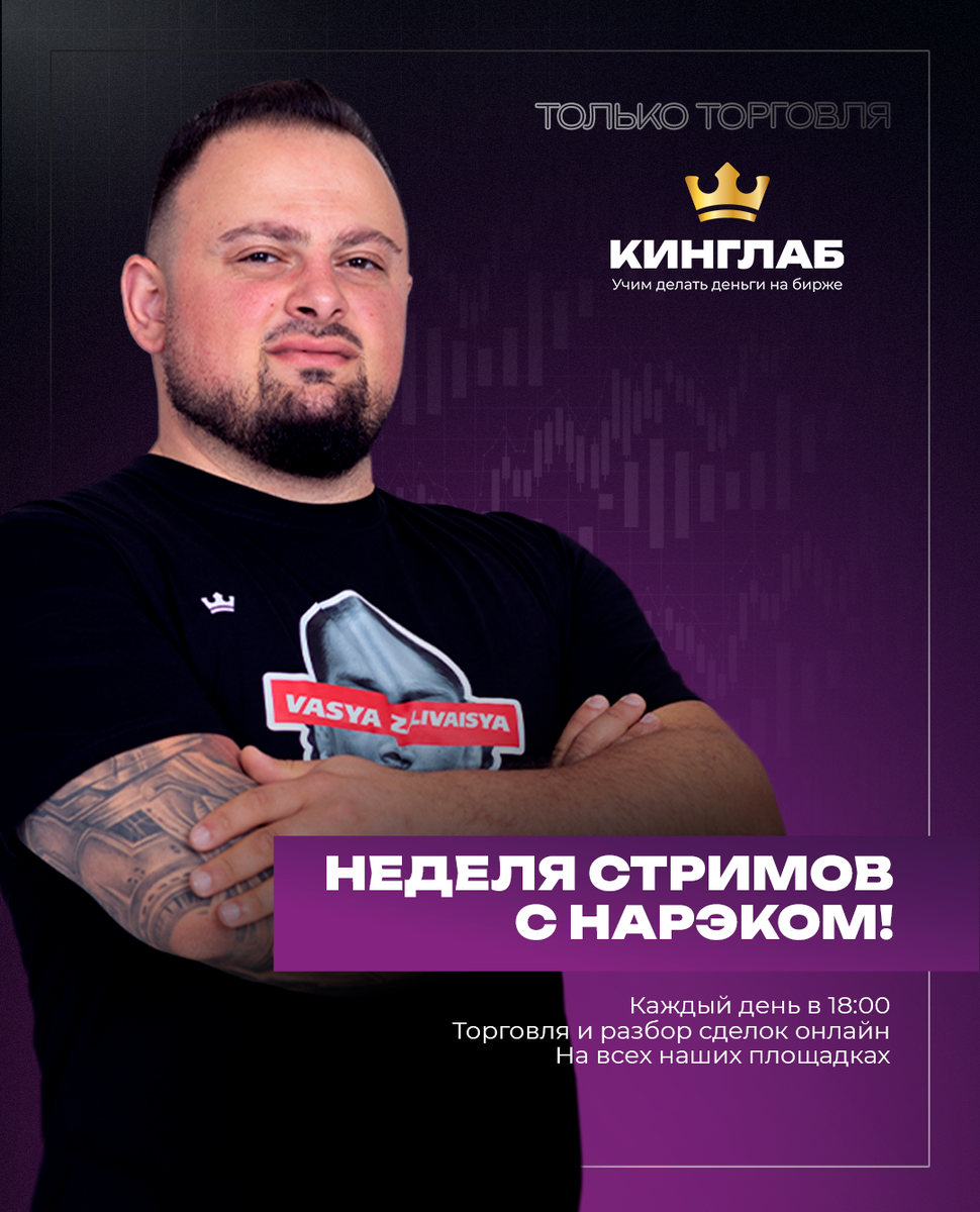 Только торговля, только хардкор - таков девиз этой недели, ведь каждый день в 18:00 по Мск для вас будет стримить основатель проп-компании и академии Кинглаб - Нарэк Григорян.