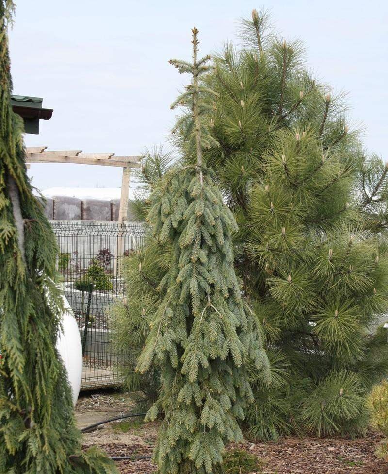 Ель Энгельмана Пендула — один из наиболее востребованных декоративных видов хвойников для небольших садов и парков. Этот сорт выделяется своей изящностью: крона узкоконическая, ветви свисают плетиообразно, создавая удивительный декоративный эффект. Слегка бархатистая хвоя значительно мягче, чем у других представителей семейства сосновых, что придает растению особую привлекательность. Основное достоинство ели Энгельмана Пендула заключается в её выразительной серо-голубой окраске хвои, которая делает дерево заметным элементом любого ландшафта. Однако важно учитывать, что эта уникальная окраска сохраняется лишь при достаточном освещении. В условиях затененности оттенок хвои теряет насыщенность, становясь менее ярким. Для поддержания здоровья растения необходимы регулярные обработки фунгицидами, особенно в весенний и осенний периоды, когда риск заболеваний возрастает. Ель предпочитает светлые участки, хотя способна развиваться и в полутени. Почва должна быть плодородной, желательно суг