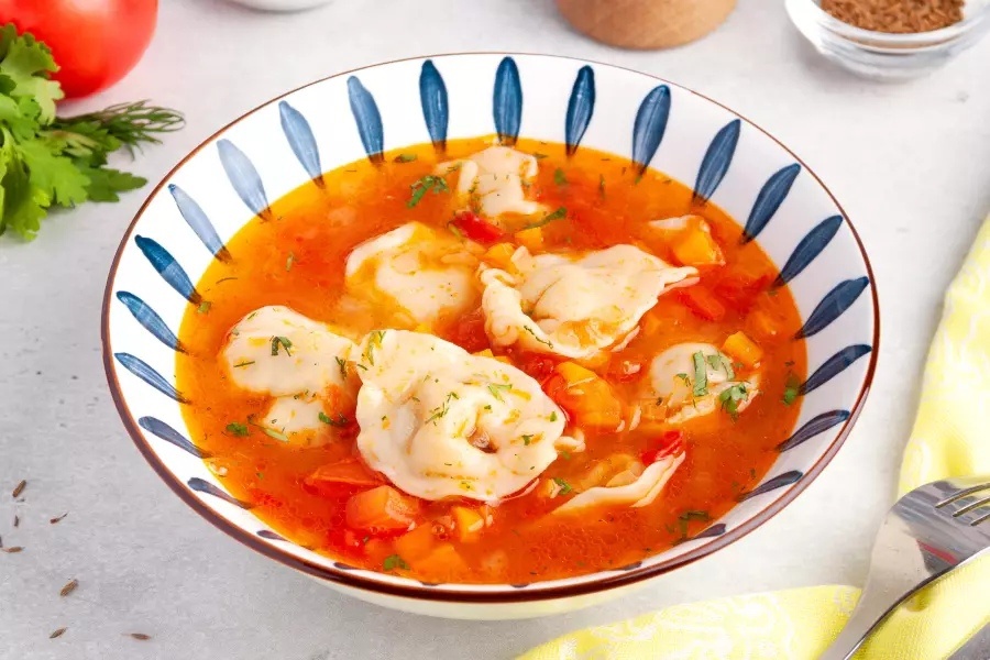 Чучвара — не обычное блюдо, а настоящая кулинарная традиция, уходящая корнями в культуру стран Центральной Азии. Это блюдо представляет собой изделия из теста с мясной начинкой в густом соусе на основе мясного бульона. Оно символизирует тепло домашнего очага и гостеприимство, часто подается на семейных праздниках и торжествах. Изделия отличаются формами и размерами, поскольку разные семьи владеют собственными, уникальными рецептами, передающимися из поколения в поколение. В чучваре заключено не только богатство вкусов, но и воспоминания о родных и близких, об их заботе и домашнем уюте. Так, чучвара является неотъемлемой частью культурного наследия, отражая богатство традиций и обычаев народов Азии. Автор рецепта: Вкуснофф Порции: 4 Ингредиенты Пшеничная мука500 г Вода200 мл Куриные яйца1 штука Соль щепотка Для начинки: Баранина500 г (мякоть) Курдючный жир100 г Репчатый лук2 головки Молотый кориандр1 ч. л. Молотая зира1 ч. л. Соль по вкусу Для соуса: Говяжий бульон2.5 л Помидоры3 шт. Ре