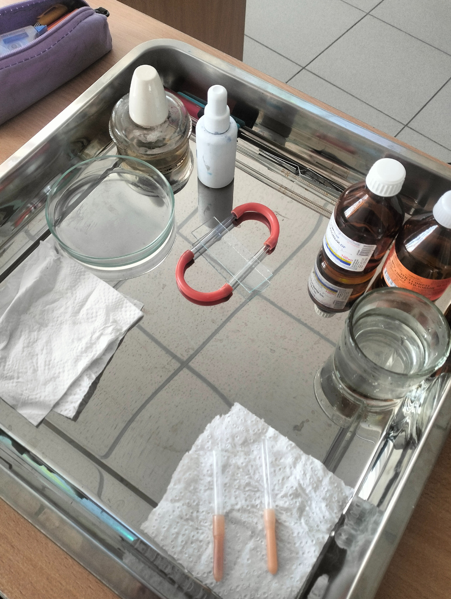 Цель работы: Изучить микроскопическое строение плесневого гриба Aspergillus flavus, развивающегося на хлебе, при увеличении ×10, ×40 и ×100. Оборудование и материалы: Ход работы: 1. Макроскопическое исследование: 1. Рассмотреть плесень невооруженным глазом. 2. Aspergillus flavus образует желто-зеленые пушистые колонии с зернистой структурой. 3. По краям колонии можно заметить светлый или белый налет. 2. Подготовка микропрепарата: 1. Обработать иглу над горелкой. 2. Взять иглой небольшой образец плесени. 3. Капнуть на предметное стекло каплю воды. 4. Перенести плесень на стекло и распределить. 5. Накрыть покровным стеклом. 6. Поместить препарат под микроскоп. 3. Микроскопическое исследование: При увеличении ×10: Видны длинные разветвленные гифы (нити мицелия). Можно заметить концевые утолщения, из которых формируются спорангии. При увеличении ×40: Определяются крупные головки конидий, типичные для рода Aspergillus. Видна характерная кистевидная структура спороношения. При