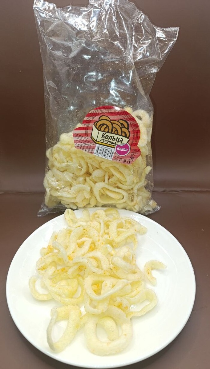 Не маленькая пачка, до верху заполненная чипсами, сами чипсы лёгкие, даже нежные, ароматизаторов сверху положили мало, поэтому советую класть в рот не по одному колечку, а сразу горсть, хоть где-то приправа да и попадётся. Это нормальный продукт за свои деньги, не ждите ярких красок как от "Лейс" рифлёного и всё будет хорошо.