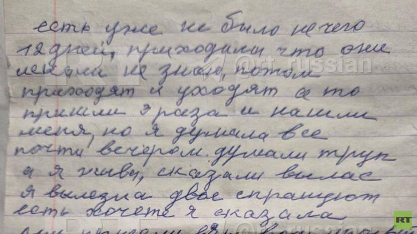 Бойцы отряда «Питерского» Спецназа «Ахмат» показали записи, найденные у пожилой женщины, которая была обнаружена мертвой в Мартыновке. Эти обращения к родственникам были найдены во время освобождения Суджи и окрестных сел. Сообщается, что тело женщины было найдено и вывезено в ходе очистки населенных пунктов от ВСУ. В процессе поиска её документов бойцы наткнулись на дневник, который она вела во время оккупации села. В своих записях женщина прощается с близкими, делится горем и просит о достойных похоронах. Некоторые строчки из этих записей приводит RT: «После войны найдите хоть косточку и похороните возле Светы, а душа на небе»; «Не плачь, я сама виновата. Витька и Валька не взяли, я просилась, сказал – машина слабая, а сами поехали»; «Я жила, спала в сарае под столом… Каждый день прошу о смерти. Из сарая перешла в хату, буду лежать на кровати, часов нет. Есть уже не было ничего 12 дней»; «Прощайте, дети, не увидимся – ни я вас, ни вы меня, целую всех».