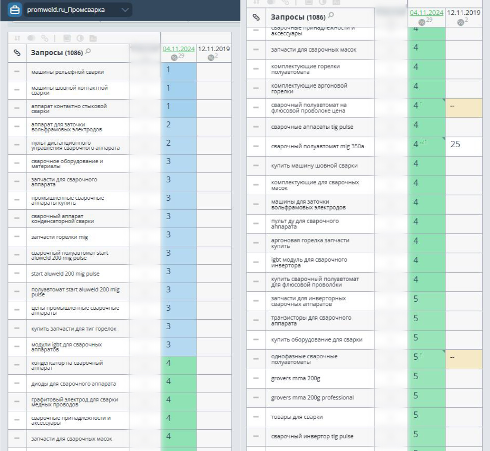 Мы создали начальный список ключевых слов, а затем добавляли всё новые запросы. Это как если бы мы пополнили каталог магазина новыми категориями, учитывая то, что именно ищут наши клиенты. Благодаря этому охват запросов сайта стал шире, и он мог появляться в поиске по разным темам, связанным с оборудованием.
