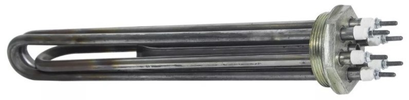 Один из самых распространенных и доступных типов нагревательных элементов, т.к. поставляется уже готовым изделием и монтируется в бак с маслом или трубу теплообменника (нагревателя).