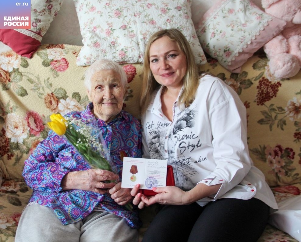 Анна Соломеина вручила землякам юбилейные награды, цветы и подарки. А ветераны вспоминали героическое военное время, с гордостью рассказывали о своем трудовом подвиге, расспрашивали о новостях предприятия.