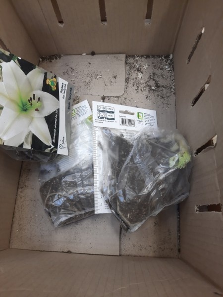 Начну с начала. На входе, напротив касс, вокруг коробок с чем-то интересным суетятся дамы. Торчит призывная табличка: скидка 50%. Ну конечно, луковицы по сниженным ценам. Гладиолусы и лилии. Состояние луковиц хорошее, не сушняк. Судя по количеству пакетов в коробках, акция действует не первый день.