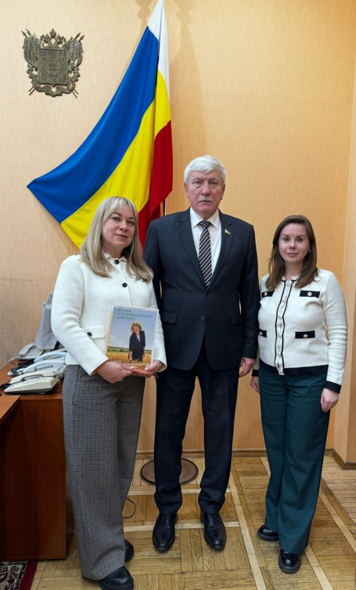 Специалисты «ЕвроМедиа» обсудили подготовку к событию с руководителем комитета по аграрной политике донского парламента Вячеславом Василенко. В ходе подготовки к Всероссийскому Дню поля, который пройдет в Волгоградской области 2-4 июля, состоялась встреча председателя комитета по аграрной политике Законодательного собрания Ростовской области Вячеслава Василенко с директором отдела по работе с клиентами и органами власти Южного федерального округа холдинга «ЕвроМедиа» Анастасией Коломийцевой и заместитель директора отдела Ольгой Ноздриной. В ходе беседы заместитель председателя донского парламента поделился с представителями журнала «Вестник АПК» успехами донских аграриев и рассказал о федеральной и областной поддержке сельхозпроизводителей Ростовской области. Специалисты «ЕвроМедиа» также обсудили с Вячеславом Василенко, который много лет является членом редакционного совета издания, подготовку к ежегодным событиям в аграрном секторе. Добавим, что о ежегодном Всероссийском Дне поля нео