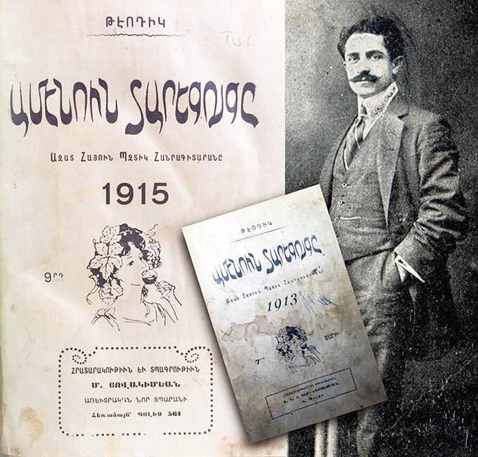 Он приобрёл большую популярность благодаря хорошо известным сборникам ежегодников «Аменун Тарецуйц», первый год выпуска которых был в 1907 году, в самые суровые годы гамидовской диктатуры. Конституция Османской империи, провозглашенная в Турции в следующем году, позволила сделать календари более всеобъемлющими, обеспечив сотрудничество почти всех выдающихся писателей и армянских деятелей того времени. Эти тома, которые были тщательно опубликованы с большим количеством иллюстраций, литературных, филологических, статистических и других материалов, особенно ежегодники за 1909-15 годы, считаются небольшими энциклопедиями, представляющими армянскую жизнь и культуру.