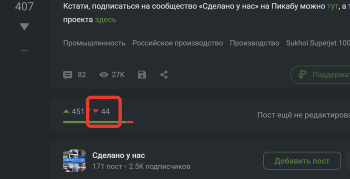 Да, такая пропорция меня скорее радует, ведь все таки 9 из 10 даже тут на Пикабу - нормальные, адекватные люди, которых радуют успехи страны. А вот этих кто ставит минус, их наверное можно списать на граждан соседней пока еще страны. Но по опыту, все таки это наши, доморощенные. Их где-то так и есть - 10% отбитые всепропальщики, у которых совсем мрак в голове. 10% такие же отбитые ура-патриоты, ничем не лучше первых, только в обратную сторону. И 80% колеблется где-то в центре, тяготея кто к одному кто к другому лагерю. Так вот, задача "Сделано у нас" не вот эти 10% совершенно отбитых перевоспитать, их невозможно в принципе, они Россию ненавидят лютой ненавистью, иногда даже не отдавая себе отчета в этом. Наша задача вот этим 80% мозги на место вправить, думать научить. К сожалению большая их часть тяготеет к всепропальщикам, уж сильно мозг им засрали за позднесоветское время, потом девяностые и нулевые. Но вот в таких новостях как сегодня, когда действительно позитив и гордость, их аде