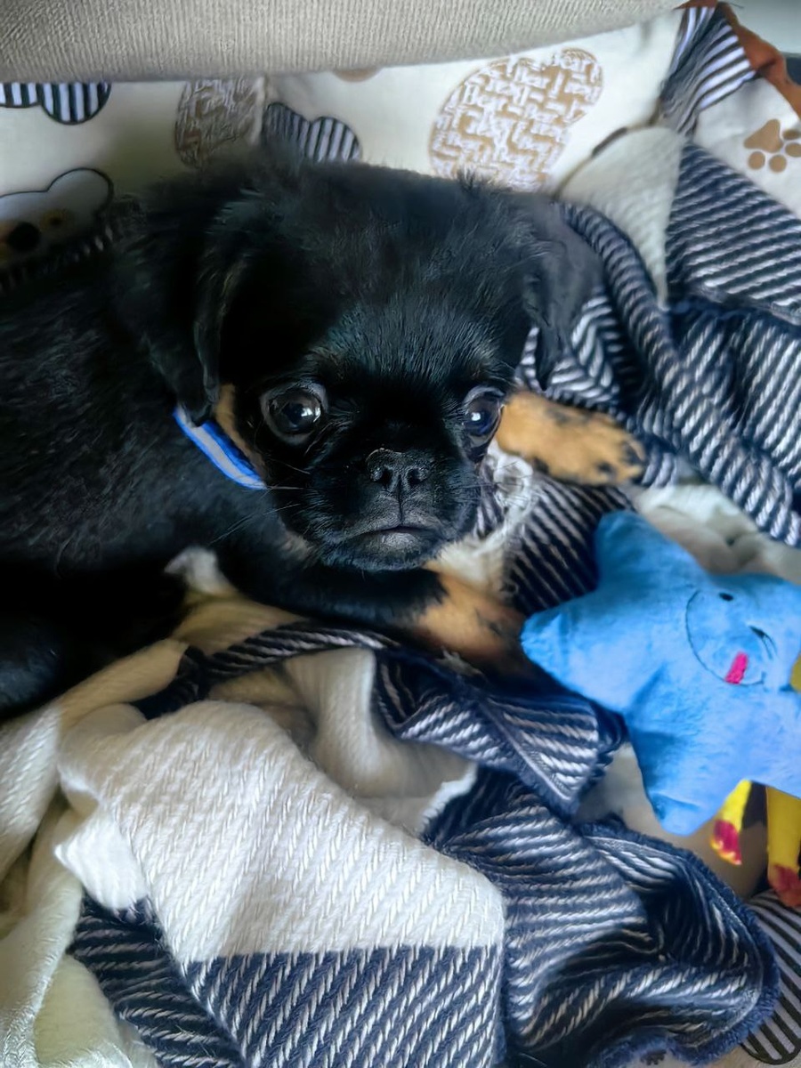 Привет! Мы уже неделю как забрали нашего щенка брабансона, и хочу рассказать, как все проходит. Если вы думаете завести брабансона или просто любите собак, будет интересно! Нашему малышу всего 2,5 месяца, но он уже умничка — ходит в туалет на пеленку. Спасибо заводчикам, они его хорошо подготовили. За неделю было всего 2 "промаха", но для такого возраста это нормально. Если хотите брать щенка брабансона, обязательно спросите у заводчика, как они приучают к туалету. Я знала, что брабансоны активные, но не думала, что настолько! Это не просто собака, а настоящий "вечный двигатель". Он играет так, что вовлекает всех вокруг. Игрушки летают по всей квартире, а кошка уже устала от его внимания. Если вы хотите спокойную собаку, брабансон — не ваш выбор. Пока что сон у нас не очень стабильный. Малыш просыпается рано утром и требует внимания. Если не встать, он разбудит весь дом. Но это временно, щенки быстро адаптируются. Удивительно, но он уже пытается залезать на кровать, хотя я думала, что