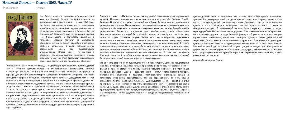 Николай Лесков — Статьи 1862. Часть IV - Критика