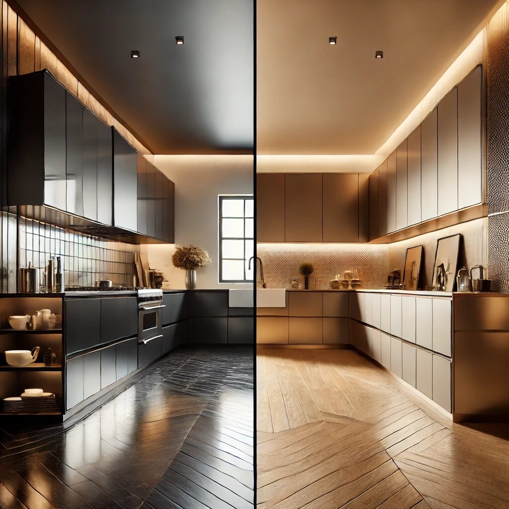 Выбирая кухню, мы уделяем внимание не только её цвету и материалам, но и типу покрытия фасадов. Один из главных вопросов, с которым сталкиваются покупатели: глянцевая или матовая кухня – какой вариант лучше? Оба типа имеют свои преимущества и недостатки, и сегодня мы разберём их детально, чтобы помочь вам принять правильное решение.
