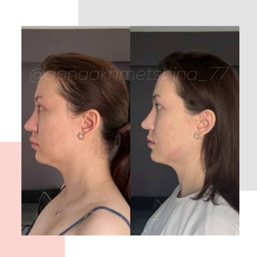Вот и такое бывает! За три дня! 💪🔥🔥🔥 Ольга сделала фото через три дня занятий и была сильно удивлена изменившимся профилем! Просто удивительно, за такой короткий срок, насколько подтянулось лицо и линия челюсти, подбородок был поджат вверх - встал на законное место, округлилось ушко. Очень круто, желаю Оле дальнейших успехов!)🏆 💃