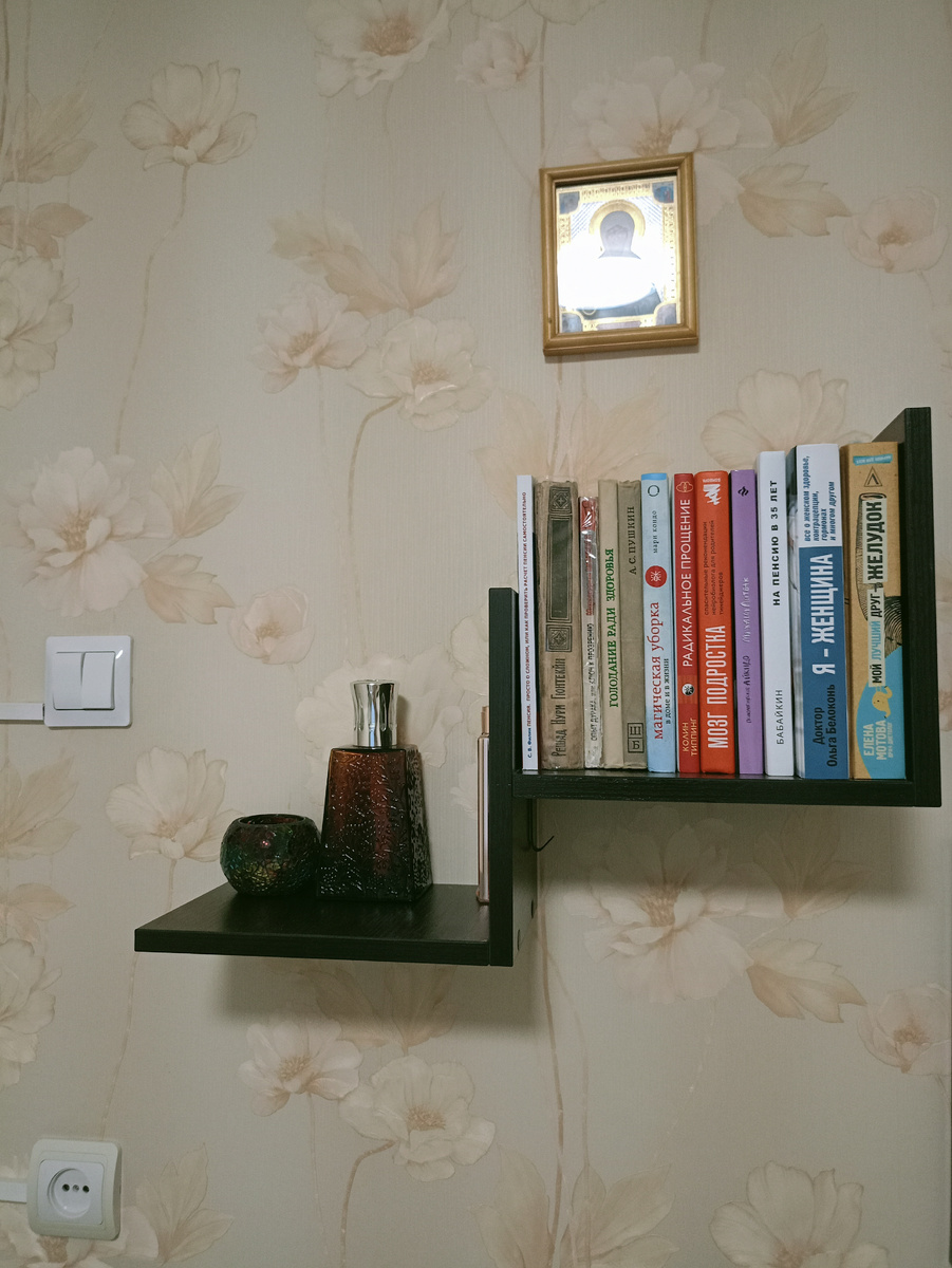 Это продолжение предыдущей статьи. Я люблю читать и говорить о книгах могу долго :) У нас много книг в других комнатах, но очень не хватало книг в нашей спальне, я иногда люблю почитать перед сном. Не хотелось загромождать сильно комнату. Попросила мужа сделать небольшую полочку на стене. На ней храню свои самые часто читаемые книги. Они для меня как справочники, к которым я обращаюсь снова и снова. Сейчас покажу: Эта часть про здоровье. Книга про женское здоровье "Я - женщина", как мне кажется должна быть у каждой. Она хорошо систематизирована, очень удобна, есть ответы на вопросы, есть чек-апы по возрастам. "Опыт дурака" я купила, когда заинтересовалась восстановлением зрения. Информация мне показалась интересной, я так и не добралась до практического применения. Подобная ситуация, кстати, тоже описана в книге. Зато книгу про голодание профессора Николаева я, можно сказать, выучила наизусть. Когда проходила 7-дневное голодание, находила мотивацию, в т.ч. в ней. Книгу я нашла на кн