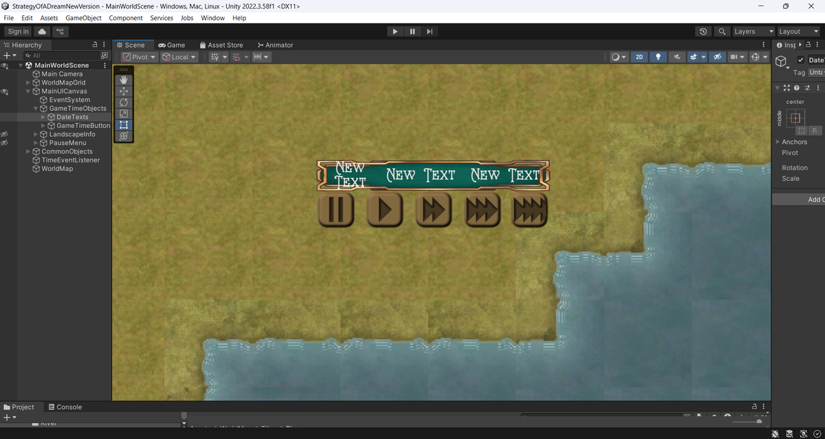 Стратегия мечты – игровое время. Приветствую, дорогие друзья! Итак, продолжаю делать публикации по разработке глобальной стратегии на движке Unity. В этой статье я хочу разобрать игровое время, создать логику управление временем, увеличение и уменьшение скорости течения времени в игре, пауза. Для начала создадим кнопки по управлению временем и текстовое поле, в котором будет отображаться игровая дата. Затем, естественно, надо создать скрипт, который этим временем будет управлять. using TMPro; using UnityEngine; using UnityEngine.UI; public class GameTime : MonoBehaviour { [SerializeField] private TextMeshProUGUI _dayText; [SerializeField] private TextMeshProUGUI _monthText; [SerializeField] private TextMeshProUGUI _yearText; [SerializeField] private Button _x0Button; [SerializeField] private Button _x1Button; [SerializeField] private Button _x2Button; [SerializeField] private Button _x3Button; [SerializeField] private Button _x4Button; private float_daysPassed = 1; private int_monthsPa