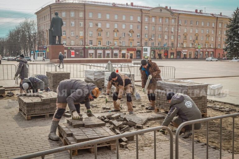 Строители уже начали демонтаж плитки с проезда вокруг площади со стороны гостиницы «Десна». Плиткой из уральского гранита предстоит уложить примерно 1300 квадратных метров. Так же строители планируют обновить и выровнять бордюрный камень. Старую плитку используют повторно. По решению городской администрации, этим материалом замостят дорожки в пионерских лагерях.