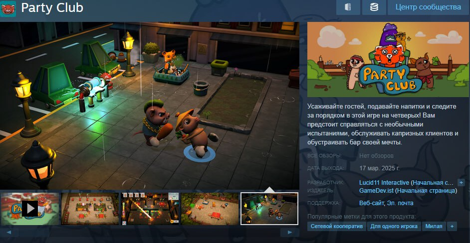 Завтра в Steam выйдет Party Club в течение 24 часов после релиза игру можно будет забрать бесплатно, после чего она станет платной. В Party Club вам предстоит управлять собственным заведением, играя за зверюшек в компании до 4 человек.