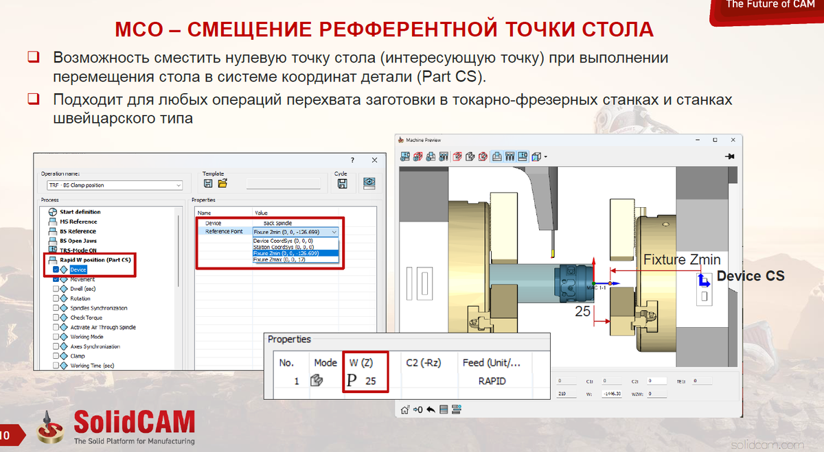 Возможность сместить нулевую точку стола В системе SolidCAM реализована удобная функция 😉 — смещение нулевой точки стола (или интересующей точки) при выполнении перемещения стола в системе координат детали (Part СЅ). Это особенно полезно при необходимости точного позиционирования заготовки без необходимости повторного задания координат вручную. 📎Ключевые особенности: Это решение повышает точность и гибкость при подготовке станка, сокращая время на настройку и минимизируя ошибки. ✍️ Открытие и закрытие кулачков в симуляции Теперь в SolidCAM реализована возможность визуализации открытия и закрытия кулачков прямо в окне предпросмотра станка и в машинной симуляции. Это значительно повышает качество моделирования и позволяет оператору видеть 👀 реальные движения механизма. 📎Основные моменты: Эта функция делает симуляцию более реалистичной и информативной, что способствует повышению надежности и эффективности производства. 🫵 Новые возможности для автоматизации и удобства 📎В SolidCAM ре