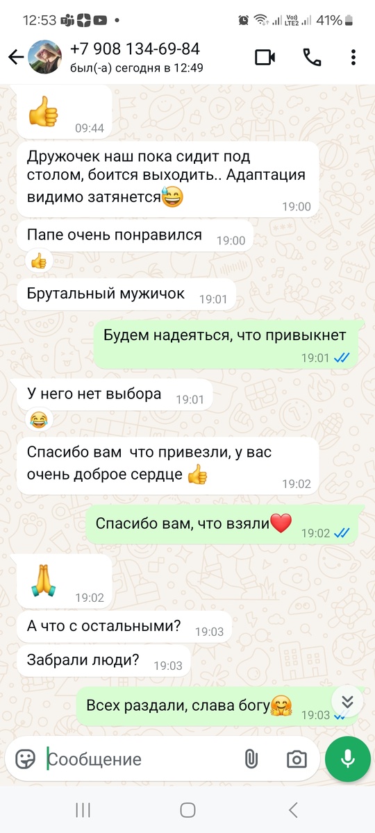 Полтора месяца висело объявление на авито, никому был не нужен... И кому я только его не предлагала, даже писала пост здесь: И тут вдруг приходит сообщение, что могут забрать Дружка, но новые хозяева живут в Панино, а это 80 км от Воронежа, и заберут, когда в город приедут🤷♀️ И мы решили отвезти его туда сами. Хозяева обрадовались, и мы договорились о месте встречи и передаче кота. Его поимка была отдельным квестом. Так -то кот ручной, и мы его легко усадили в переноску. Но пока мы отвлеклись на другие дела, он оттуда выскочил🤦♀️и второй раз уже идти к нам не хотел. Так что нам пришлось постараться и, не смотря на его страшное шипение, снова поместить в сумку. Там он плакал, очень жалобно😪 Всю дорогу я его гладила и уговаривала, но он все равно волновался, и я тоже, так как понятия не имела, что там будет да как. Но я себя утешала, что в новом доме ему будет лучше, чем на улице. Встреча с новыми родителями состоялась вовремя, это были пожилые люди, по их рассказам, я поняла, что