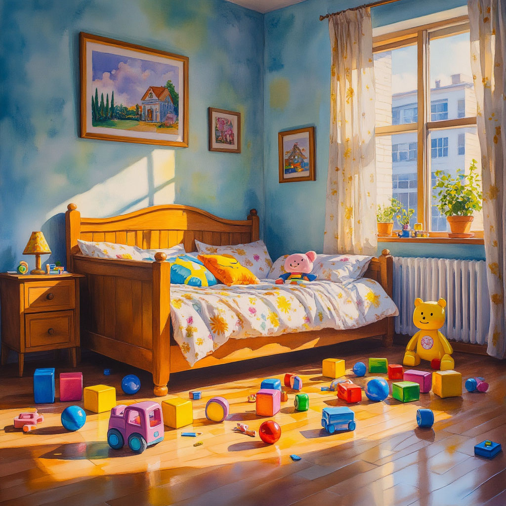 Творческий хаос — часть детства. Игрушки, поделки, книги, следы творчества — это не беспорядок, а бесконечный процесс. Важно, чтобы был базовый порядок (где спать, где ходить), но не стремиться к «как на фото в каталоге».