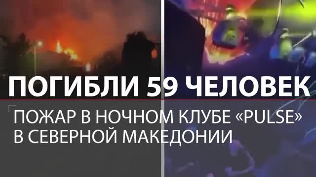 Ещё 155 человек получили серьёзные травмы. В ночь на 16 марта в небольшом городе Кочани (Северная Македония) произошла трагедия. В местный ночной клуб Pulse, рассчитанный максимум на 500 человек, пришли 1,5 тысячи. Во время выступления македонской группы DNK фейерверк поджёг потолок. Сначала люди спокойно снимали происходящее на камеры, не осознавая опасности. Затем началась паника. В Pulse не было запасных выходов, и вся толпа рванулась к единственной двери. Вспыхнул пожар. Все начали кричать: "Уходите, уходите!" Но, к сожалению, выход был только один, а внутри находилось 1500 человек. Затем все начали толкать друг друга. Я направилась к выходу. Не знаю, как, но оказалась на полу. Я не могла встать. Люди начали топтаться по мне. Каким-то чудом мне удалось выбраться.Мария Тасева, пострадавшая Марии Тасевой удалось спастись. Но её старшая сестра не смогла выбраться из охваченного огнём Pulse. В результате пожара погибли 59 человек, в том числе почти все участники группы DNK. Выжил тольк