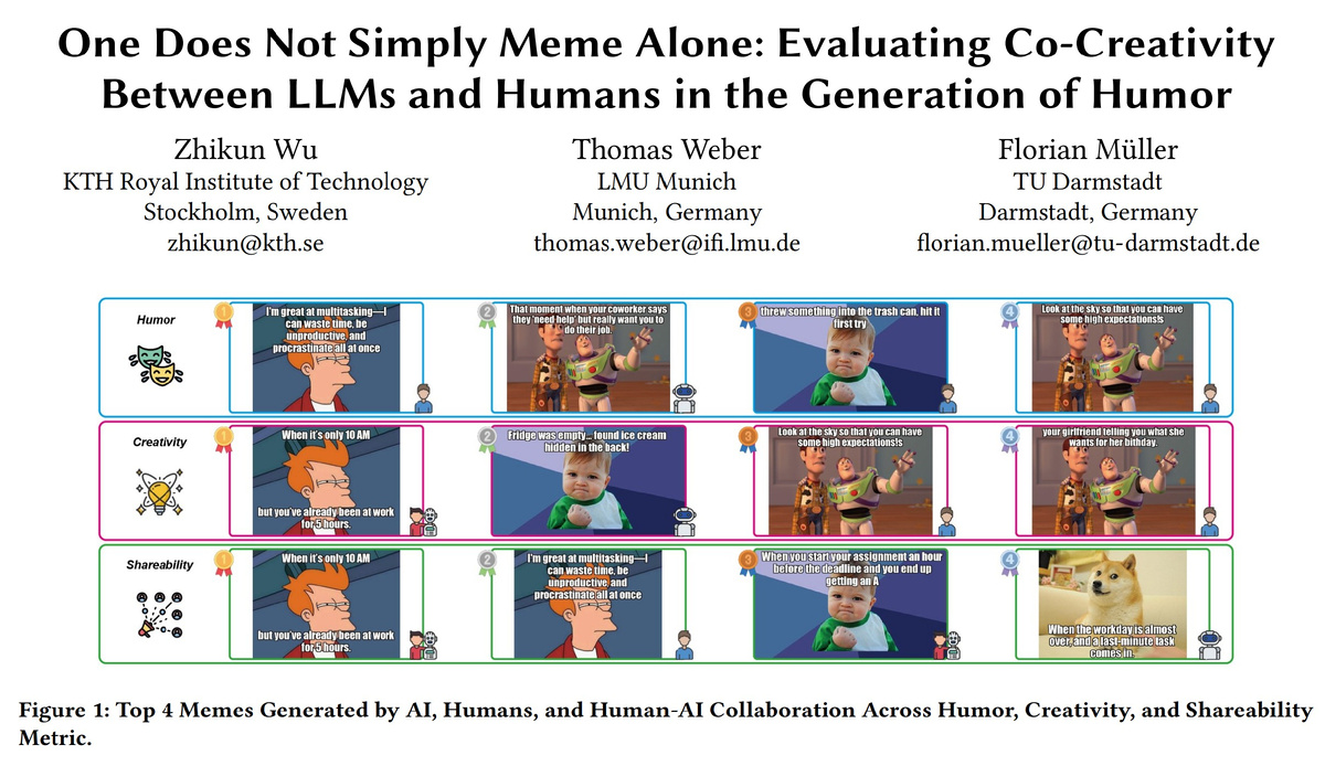 Люди средних способностей уже проигрывают ИИ почти во всем Месяц назад я писал «Пора задуматься о перемене участи. Так ли уж ИИ будут нужны «кожаные мешки»?». Поводом было исследование, показавшее, что в 6 медицинских практиках «ИИ без врача» лучше врача-человека, работающего вместе с ИИ. Что скрывать. Даже после начала революции ChatGPT сохранялась надежда, что медицина не шахматы, и всеведущая, но тупая машина врачей не превзойдет. Но оказалось, что еще как превзойдет. А спустя месяц, вслед за интеллектуальным превосходством врачей, обрушилось интеллектуальное превосходство юмористов. Оказалось, что и шутить ИИ может получше людей. Что LLM способны неплохо шутить, стало ясно уже после выхода ChatGPT 3.5. Но все же до чувства юмора людей этой модели было далеко. Новейшее исследование модели GPT-4o поставило людей на заслуженное нами место – юмор рядового человека менее смешон и оригинален, чем юмор GPT-4o. Проверяли со всей научной тщательностью и дотошностью на задаче генерации мемов