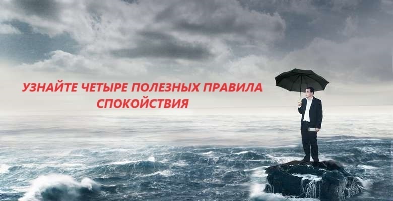 Если долго не восстанавливать спокойствие – это может быть причиной конфликта, снижается рассудительность и контроль мыслей и эмоций. Управление транспортом – может стать причиной аварии и появляются различные угрозы. Появляются различные серьезные заболевания: проблемы со сном, быстрый износ организма, люди стареют на глазах. Выход только один: прекращать нервничать и научиться расслабляться. Спокойствие – это состояние «тела и ума», при любых обстоятельствах в полном покое и расслаблении: без тревог, беспокойства, напряжения, страха, сомнения и волнения. Физическое состояние здорового тела – для нормальной полноценной жизнедеятельности. Умственное состояние – мысли, чувства и ощущение: это отражение окружающего Мира проходящего через Внутренний Мир пятью органами чувств: зрение, слух, вкус, обоняние и осязание. ПОЛЕЗНЫЕ ЧЕТЫРЕ ПРАВИЛА СПОКОЙСТВИЯ: 1. Первое правило: - Осознать причину, которая вызвала негативное состояние. Что именно послужило причиной, нарушения спокойствия? Это мог
