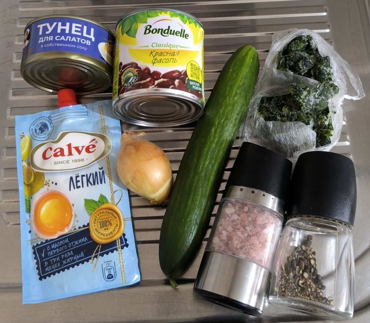 Этот вкусный салатик я подсмотрела у еще одного блогера на которого подписана. Знаю я эту девушку не долго, сказать много о ней не могу. Но точно могу порекомендовать ее канал. Интересные, не заезженные рецепты, достаточно простые в исполнении. Если заинтересовались переходите по ссылке внизу. Ну а теперь сам рецепт, немного подкорректировала количество ингредиентов под себя. Ингредиенты: - фасоль красная в собственном соку 1 банка - тунец в собственном соку 1 банка - огурец 1 штука - лук половинка маленькой луковицы - соль, черный молотый перец, зелень петрушки и майонез по вкусу Зелень промыть, обсушить и мелко нарезать. У меня была замороженная, уже подготовленная, поэтому и этот этап я пропускаю. Огурец помыть и нарезать мелкими брусочками. Лук почистить и нарезать тонкими четверть кольцами. Консервы открыть и слить с них жидкость. В миске соединить фасоль, тунец, лук, огурец, специи и зелень. Тщательно перемешать. Добавить майонез. Снова перемешать.