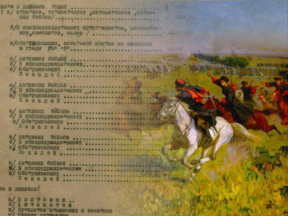 Когда готовил серию статей про бои у станицы Кущёвской, то обратил внимание — далеко не все знают, что представляли собой советские кавалерийские дивизии летом 1942 года. А ещё меньше представления про горные дивизии Вермахта. Поэтому я решил статьи, где речь идёт про боевые действия, не перегружать информацией о структуре войск, а сделать отдельный материал. Итак, у станицы Кущёвская сошлись две наши кавалерийские дивизии — 13-я и 15-я, и две дивизии Вермахта — 73-я пехотная и 4-я горная. Давайте начнём с того, что посмотрим на состав советских кавалерийских дивизий того периода. Надо сказать, что состав кавалерийских дивизий в первые годы войны так часто менялся, что не всегда сходу можно вспомнить, каким он был на какой-то конкретный момент. Если кратко напомнить историю, то к началу войны в кавалерийской дивизии было четыре кавалерийских, танковый и конноартиллерийский полки. Однако очень скоро началось формирование лёгких дивизий «истребительного типа», в которых было только три к