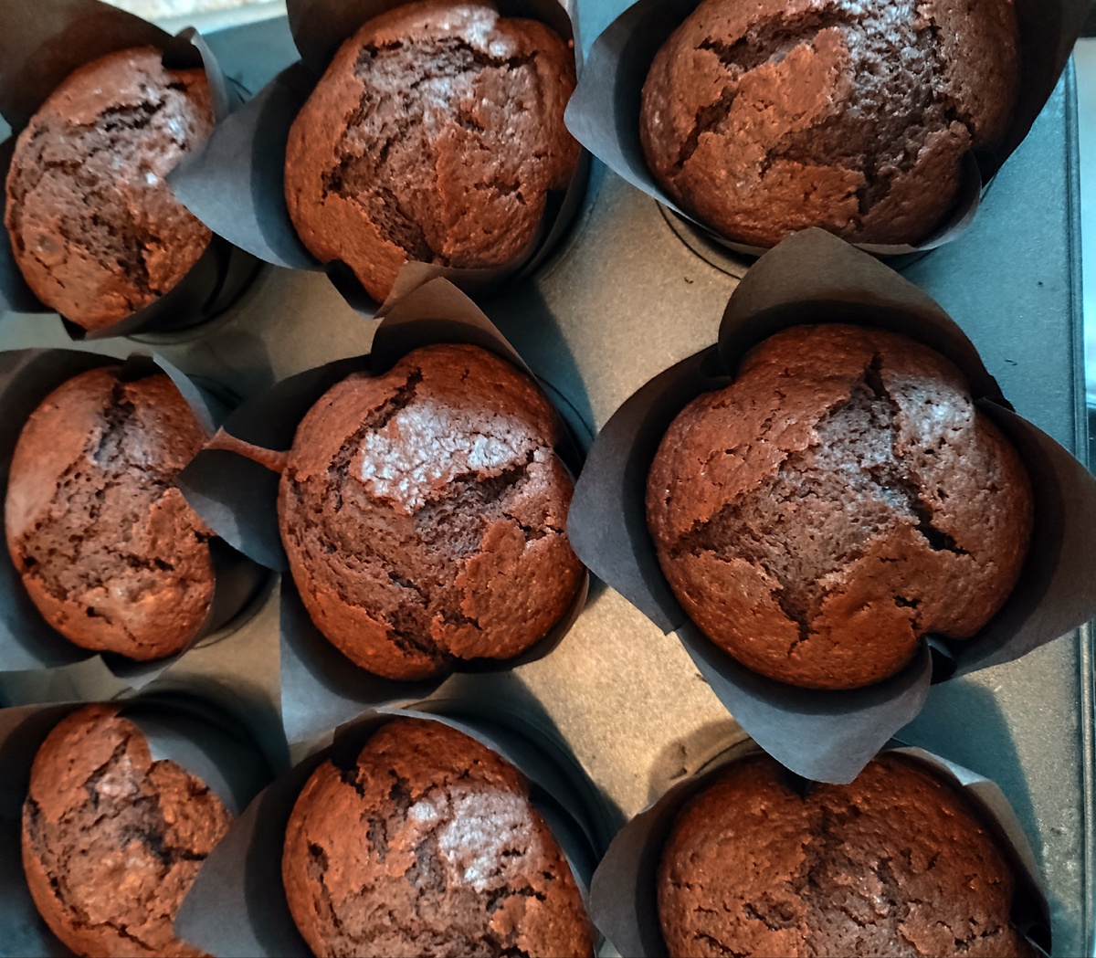 Доброго времени суток. Давайте приготовим маффины как в дорогих кофейнях. Они очень вкусные и готовятся очень просто. И так... поехали... Нам понадобится: Яйца 2 шт Сахар 200 гр Молоко 250 гр Растительное масло 120 гр Мука 300 гр Соль щепотка Какао 50 гр Сода 0,5 чл Разрыхлитель 10 гр Кофе 4 гр Шоколад 100 гр Приготовление: Взбиваем яйца с сахаром до пышного состояния. Масса должна увеличиться в размере и побелеть. Далее добавляем молоко, растительное масло без запаха, всё перемешиваем, чтобы все ингредиенты соединились. Смешиваем сухие ингредиенты: просеянную муку, соль и разрыхлитель, просеянное какао, соду и кофе. Добавляем к яичной смеси и всё хорошо перемешиваем. Удобнее перемешивать миксером на маленькой скорости. Именно перемешивать, а не взбивать. Добавляем шоколад и снова хорошо перемешиваем Для удобства отсадки тесто перекладываем в большой кондитерский мешок. В форму для кексов устанавливаем бумажные формы для мафинов. Кто -то называет их "розочки", кто-то