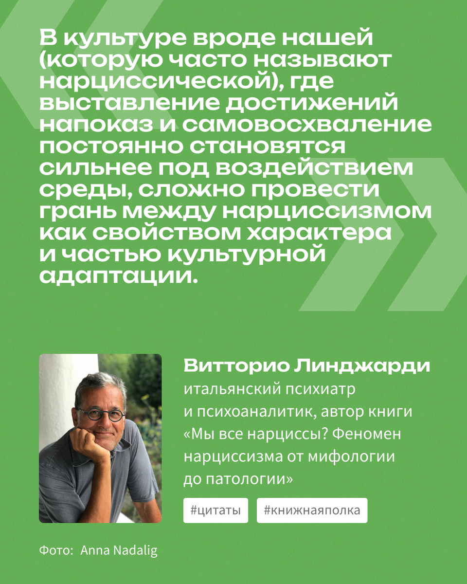 Психиатр Витторио Линджарди о грани между здоровым и патологическим нарциссизмом