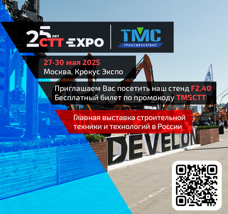 🚜 «Трансмехсервис» на CTT 2025! 🚀 Друзья, отличные новости! 🎉 Компания «Трансмехсервис», официальный дистрибьютор Develon в России, примет участие в крупнейшей строительной выставке CTT 2025, которая пройдет в Москве с 27 по 30 мая! 🏗️ 📍 Наш стенд: F2.40 🔸 На нашем стенде вас ждут новейшие модели техники Develon и TMS!
