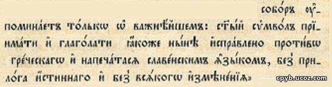 И всё же, так ли важно где и когда был догматически завершён Символ веры? Всегда найдутся нецыи никонианские невегласи, которые найдут тот список Стоглава, в котором исповедание истинности Святого Духа не будет рекомендовано обязательным (такие действительно есть). И будут с пеной у рта доказывать, что именно этот список является наиболее близким к оригиналу.