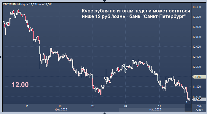 Курс рубля по итогам недели может остаться ниже 12 руб./юань - банк "Санкт-Петербург" Курс доллара к рублю расчётный, фьючерс, вечный фьючерс и межбанк. Курс евро к рублю расчётный, фьючерс, вечный фьючерс и межбанк. Курс юаня к рублю биржевой, фьючерс, вечный фьючерс и межбанк. Курс рубля по итогам недели может остаться ниже 12 руб./юань, прогнозируют аналитики банка "Санкт-Петербург". "На прошлой неделе рубль укрепился - поддержку российской валюте продолжает оказывать геополитический фактор, - пишут эксперты в обзоре. - Данные с прошлой недели также показали наличие ряда фундаментальных причин, способствовавших укреплению рубля в феврале. В понедельник курс CNY/RUB находится у 11,73 руб./юань. Другие курсы валют EM двигаются разнонаправленно. На март приходится уплата годовых налогов, и экспортеры могут заранее нарастить продажи валютной выручки. На этом фоне курс по итогам недели может остаться ниже 12 руб./юань". Цены на нефть по итогам недели умеренно выросли, в понедельник фьюче