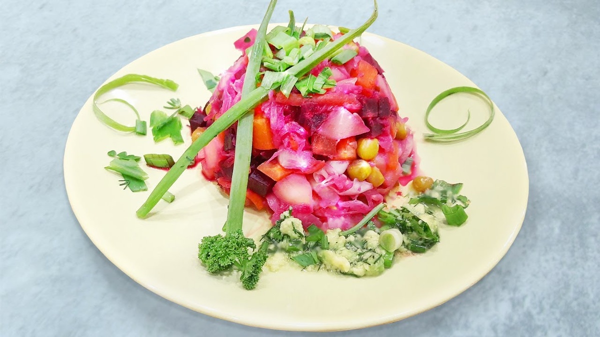 Винегрет — это традиционный овощной салат в русской кухне, который обычно включает в себя свёклу, морковь, картофель, огурцы (солёные или маринованные), а также другие овощи по вкусу. Заправка из лимонного сока придаёт этому блюду свежесть и лёгкость. Ингредиенты: Приготовление: Отварите или запеките свёклу, морковь и картофель до готовности. Остудите и нарежьте мелкими кубиками. Нарежьте солёные огурцы, лук и квашеную капусту. Смешайте все овощи в большой миске. Для заправки смешайте лимонный сок с небольшим количеством растительного масла, солью и перцем. Полейте салат заправкой и тщательно перемешайте. Попробуйте и при необходимости добавьте соль или перец по вкусу. Приятного аппетита!