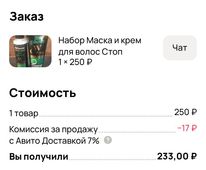 Доброго дня! Очень приятно продать за деньги то, что тебе досталось бесплатно. А с учётом того, что я участвую в тестированиях и выгодные акции не пропускаю, такие позиции у меня бывают🙃 Про последнее тестирование тут: Нужное оставляю себе, раздариваю на праздники родне и подругам, но вот что-то всё же уходит на Авито. Перебрала немного запасы, 8 марта прошло, подарки подарены, теперь распродаю лишнее😁 +233р принёс мне набор средств для кудрявых волос. Честно достаточно долго крем и маска висели, думала есть шанс, что уйдут к 8 марта, но заказали только после него. Да и скидку прописала при покупке двух средств. Регулярно пишу, что при покупке комплекта скидка, думаю это работает😅 На очереди ещё две маски из этой серии, надеюсь на долго не задержатся. И самое интересное, набор заказали из моего же города, но с доставкой. Я тоже считаю, сейчас так дешевле, чем тратить время и деньги на проезд. Мне так тоже удобно, не хочу кого-то ждать "завтра", а потом выяснится, что человек