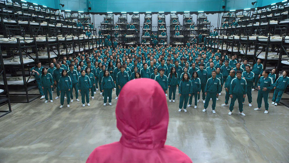 В чем секрет «Игры в Кальмара»? Прежде всего, в антиутопии. Глядя на экран, мы словно набираемся опыта, как вести себя в стрессовых ситуациях, и как будто чувствуем над ними контроль. В начале нулевых в России были популярны различные реалити-шоу с разной начинкой и идеологией, а это гипертрофированная корейская версия так называемой реальности. Яркий визуал (куклы, цветастые локации, маски охранников) — одна из причин бешеной популярности «Игры в кальмара». Потому что все упрощено до нЕльзя. Поэтому вся эта атрибутика так легко проникла в обычную нашу жизнь. Тоже в виде игры, по сути. Чем это похоже на нашу реальность? Ну давайте сравним задачи для героев сериала и то, что происходит в нашей стране. Не называя вещи своими именами, дабы не попасть под какой-нибудь репрессивный закон. При небывалом росте экономики в последние тридцать лет в Южной Корее наблюдаются высочайшие показатели бедности и закредитованности у населения. У нас с телевизора тоже говорится о том, что ВВП растет, жиз