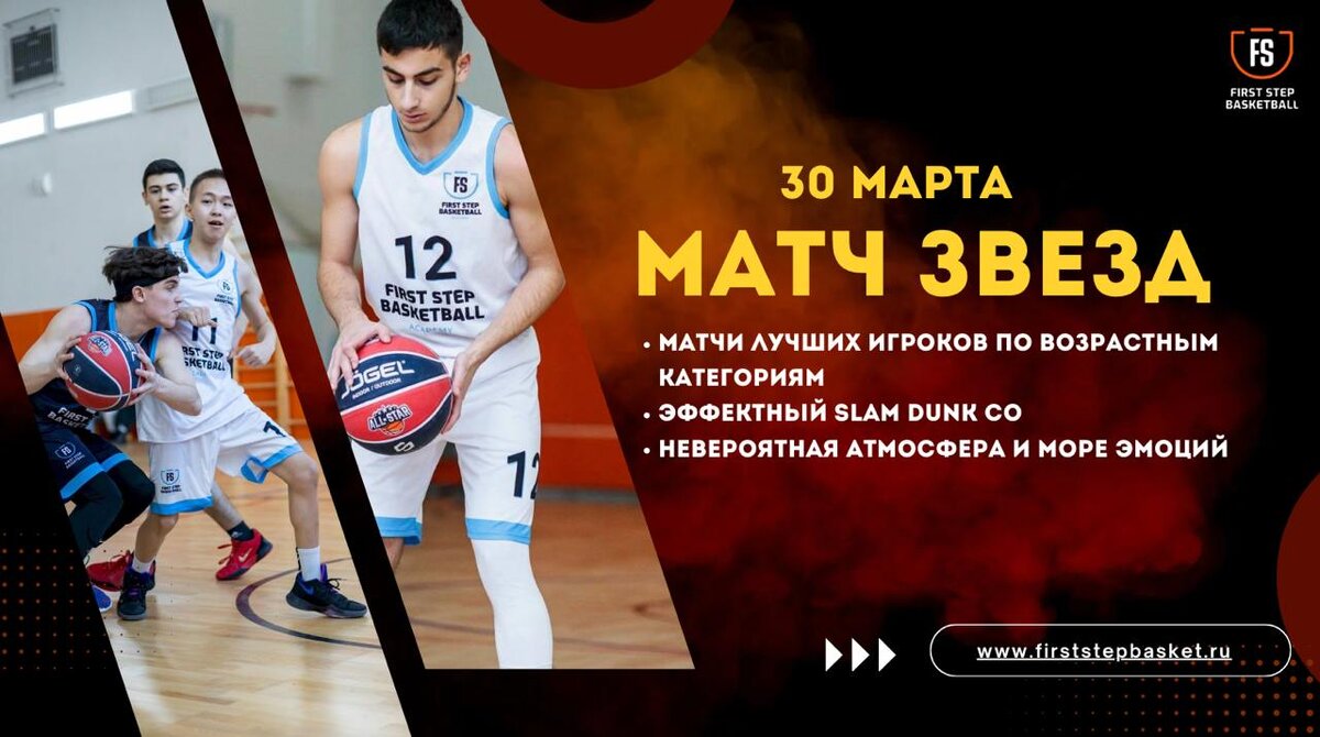 30 марта – день, когда на одной площадке соберутся лучшие из лучших! 🏀 Скоро мы опубликуем списки игроков и расписание матчей, а это значит, что уже совсем скоро узнаем, кто выйдет на паркет и покажет своё мастерство 💪🔥 ⚡️ Будет жарко: 🏆 Матчи лучших игроков по возрастным категориям 💥 Эффектный Slam Dunk Contest 🎤 Невероятная атмосфера и море эмоций Оставляем 🔥🔥🔥, если ждёте анонс списков и готовы болеть за своих! Подписывайтесь! Наш Инстаграмм - https://www.instagram.com/firststepbasket.ru/