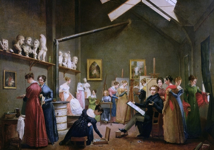 Сегодня мы продолжаем отмечать Месяц женской истории и хотим познакомить вас с выдающейся французской художницей Адриенной Мари Луизой Гранпьер. Гранпьер была ученицей Абеля де Пюжоля, который также учился у знаменитого классициста Жака-Луи Давида. В 1856 году она вышла замуж за Пюжоля и смогла завоевать признание благодаря своим жанровым и историческим картинам в стиле трубадуров. Но не только это делает её выдающейся — Гранпьер также была преданной наставницей, обучая учениц в художественной студии своего мужа. Интересно, что эта студия была специально создана для женщин и девушек. В то время художники старались избегать смешанных пространств, организуя занятия по отдельности. Например, в женских студиях рисование с натуры было запрещено из-за норм скромности — единственная мужская скульптура в студии была аккуратно повернута к стене. В студии два окна были занавешены тёмными шторами, и единственным источником света служил верхний световой люк. На стенах можно увидеть эскизы ра