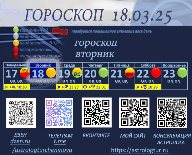 В этот день мы можем ощутить мощный прилив вдохновения и желание творить. Это отличное время для занятий искусством, музыкой или литературой, где можно дать волю воображению. Однако надо быть осторожным возможны заблуждения, иллюзии, которые могут привести к разочарованию или ошибкам. Эмоциональная уязвимость, присущая этому дню, может сделать нас более чувствительными, поэтому стараемся избегать конфликтов и недоразумений. Сегодня стоит быть внимательным и не позволять эмоциям, или кому-то, управлять нашими действиями Также этот день может вызвать путаницу и неопределенность в делах. Лучше не принимать важных решений и сосредоточиться на занятиях, которые не требуют большой концентрации, а наоборот, способствуют расслаблению и полету творческой фантазии. Венера ретроградная с 02.03.25 – 13.04.25. Что ждет именно вас? Отголоски будут до середины мая 2025 Меркурий ретроградный с 15.03.25 по 07.04.25 Коридор затмений 2025. Общее значение затмений Лунное затмение 14.03.25 "застоявшаяся