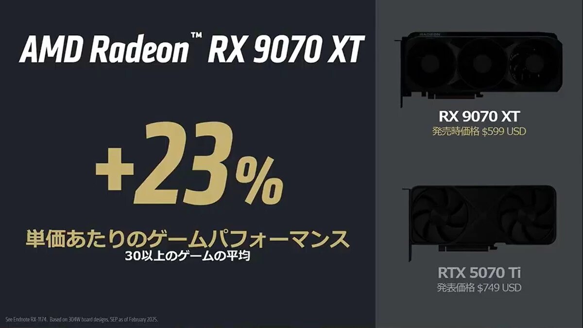 AMD провели в Японии событие Spring New Product Launch Event – Team AMD Special Gathering. В нем приняли участие популярные японские блогеры, а также представители AMD, ASRock, ASUS, Gigabyte, MSI, PowerColor и Sapphire. В рамках трансляции представитель "красных" заявил, что компания "просто не привыкла продавать так много видеокарт". В данный момент, как заявляется, AMD достигла 45% рынка графики в Стране восходящего солнца и намерена добраться до 70% в будущем. Также нам еще раз напомнили, что RX 9070 XT предоставляет на 23% лучшее соотношение цены к производительности при сравнении с RTX 5070 Ti. Единственной проблемой тут выступает то, что обе упомянутые видеокарты по рекомендованной стоимости найти фактически невозможно, а потому в зависимости от магазина и региона упомянутый показатель может меняться как в большую, так и в меньшую сторону.
